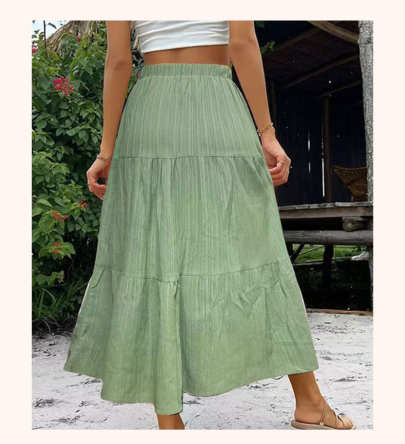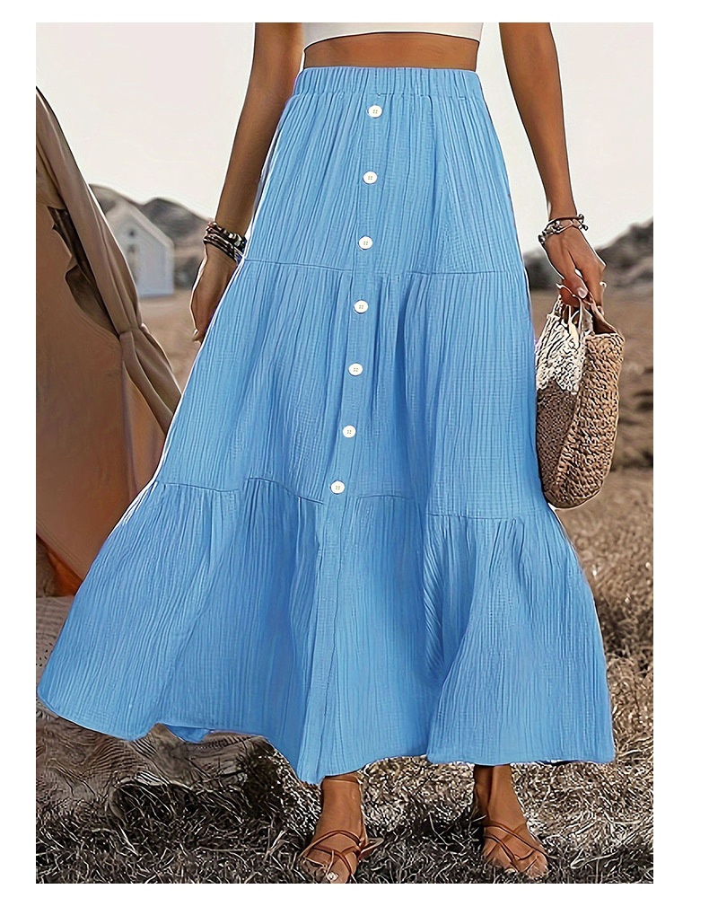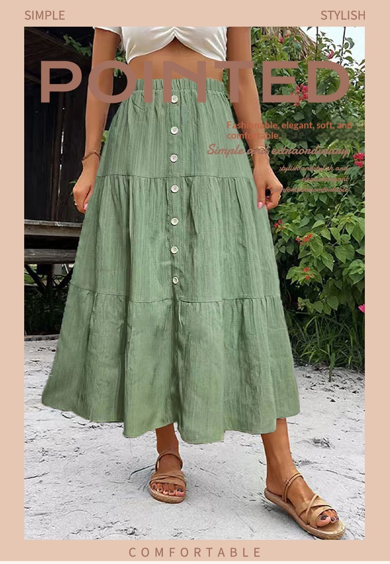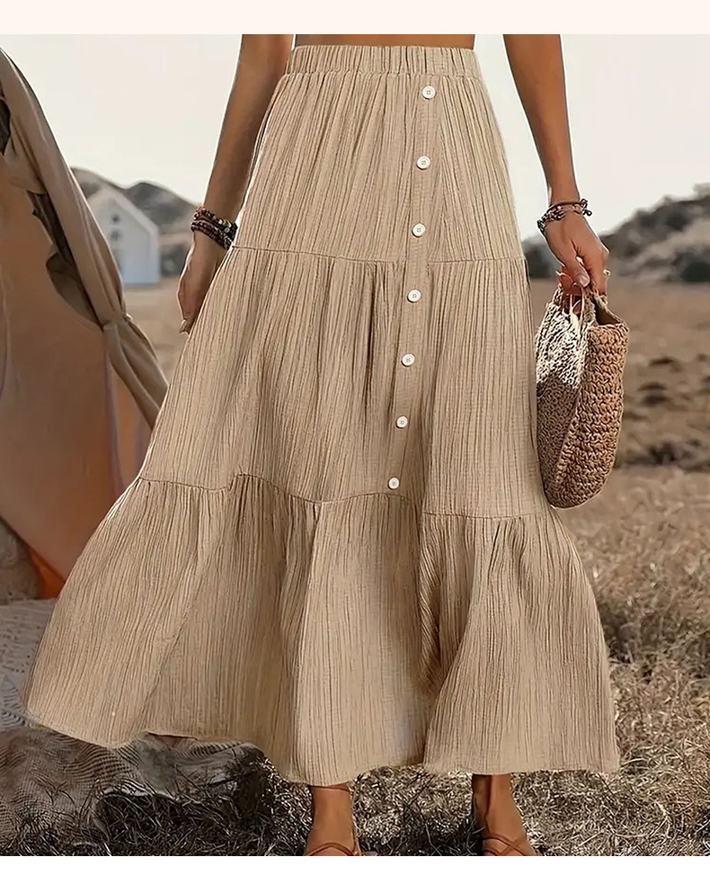 Solid Color Buckle Women's Fashion Patchwork Maxi Skirt